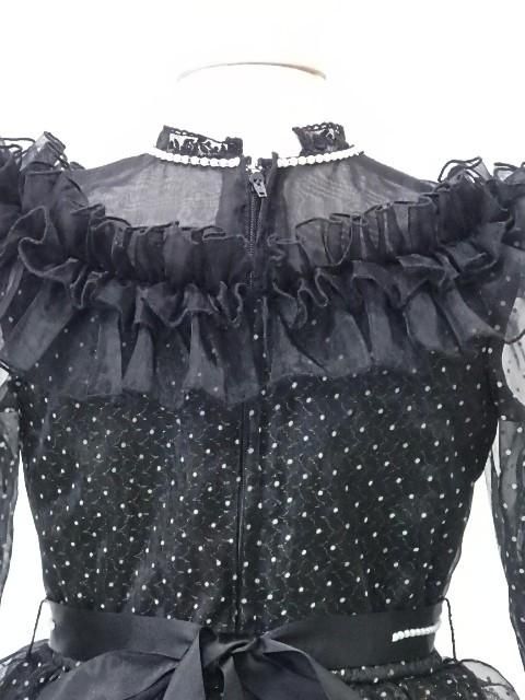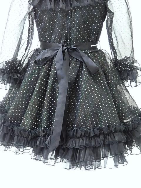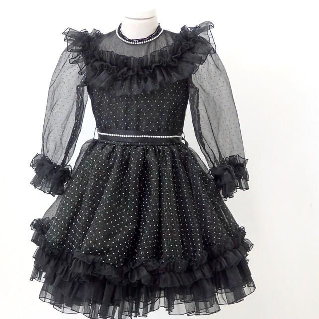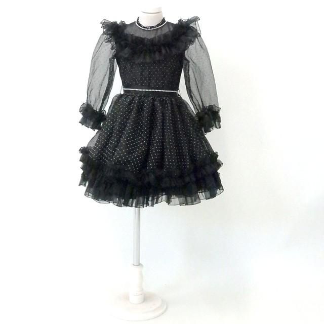 ■黒地に白の水玉柄の長袖のワンピースです。