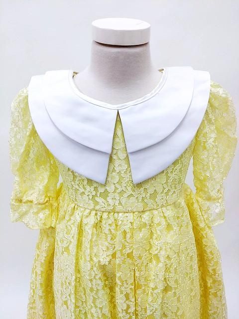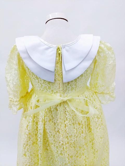 ■黄色のレース生地を使用したロングワンピースドレスです。
