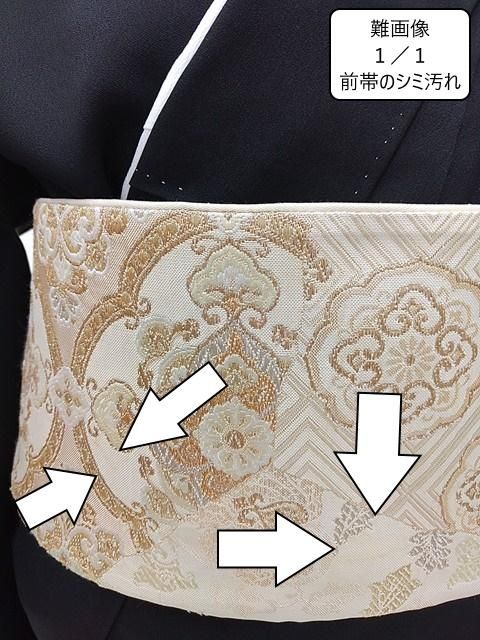 ●帯の前、ほぼ中心部分にシミ汚れが付いています。
