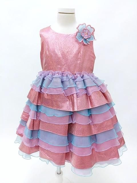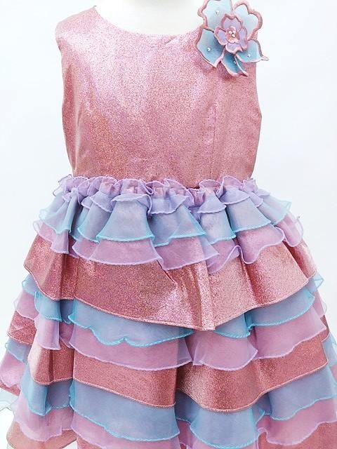 ■ラメを織り込んだメタリックピンクのオーガンジードレスです。