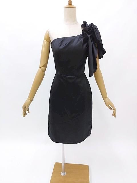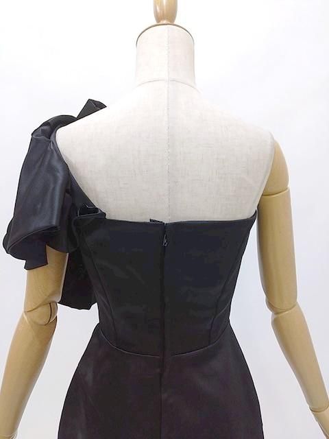 ■黒の光沢のあるサテン生地のワンショルダーワンピースです。