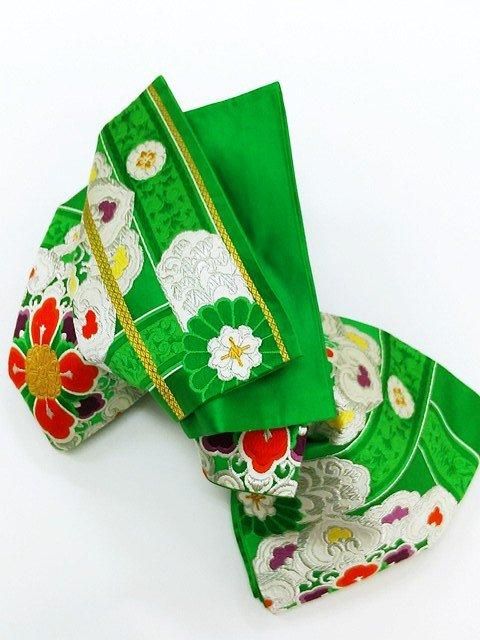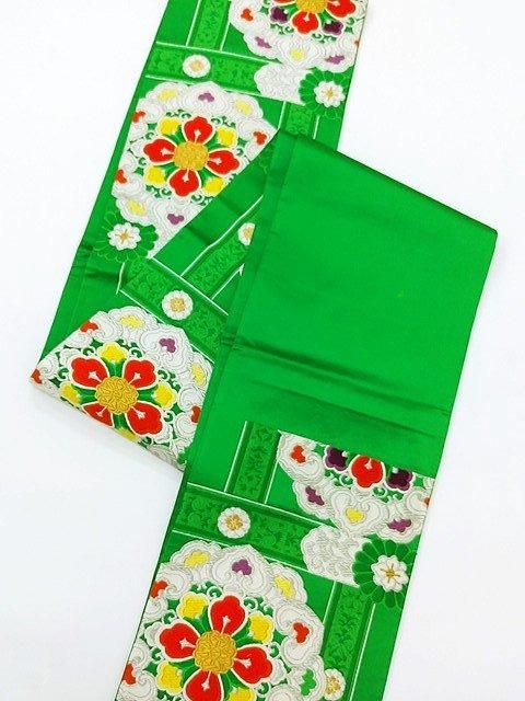 ■明るい黄緑の華やかな振袖用の袋帯です。