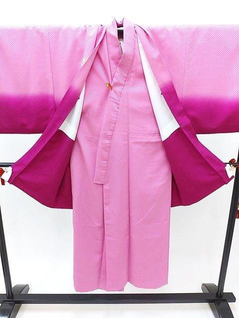 ■男性の和装礼装、ピンクの濃淡、グラデーションの入った羽織と明るいピンクの着物(長着)のセットです。