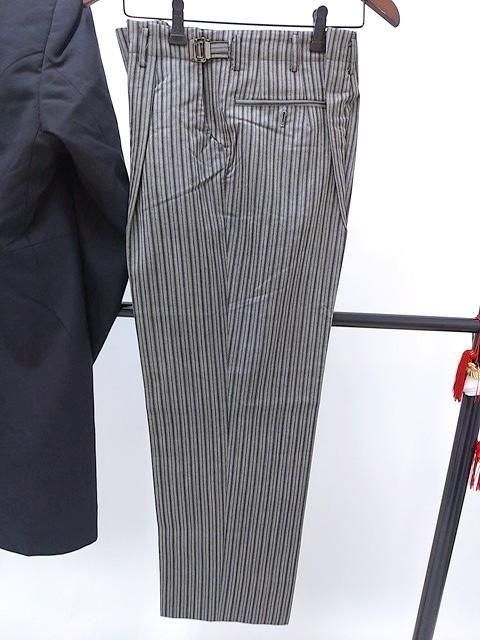 ■ダークグレーのジャケット、縞柄のズボン、グレー(灰色)の3点セットです。