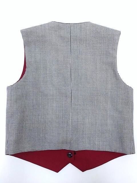 ■千鳥格子の生地を使い、ベストは共生地と赤い生地の両方が使えるリバーシブルデザインです。