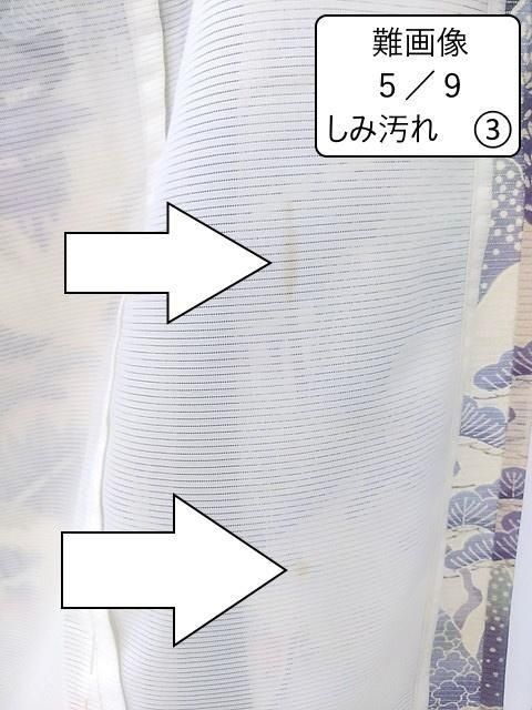 ●着物の柄の上や比翼にしみ汚れが複数付いています。