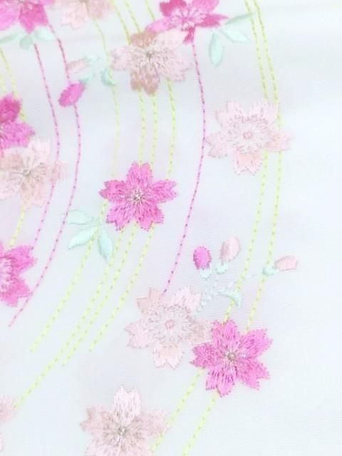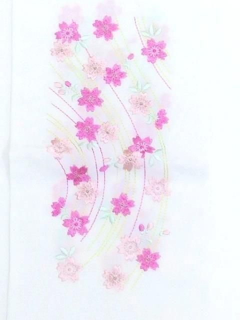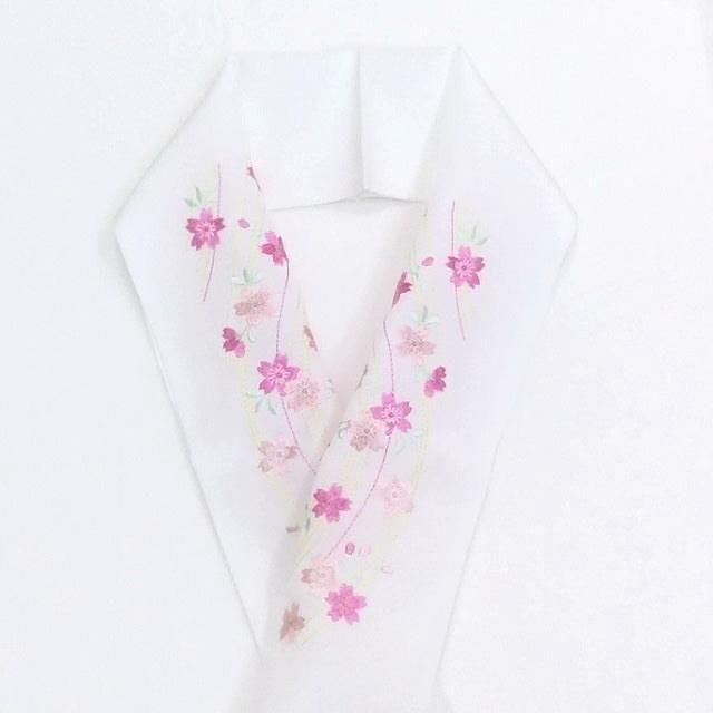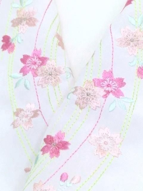 ■白地にピンクの桜の花柄刺繍の半衿です。