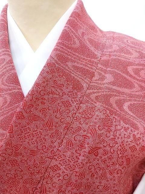 ■赤の染め分け地紋柄の付け下げ訪問着です。