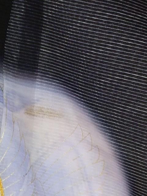 ●衿裏生地や紋、比翼に着物の染料の色移りが出ています。
