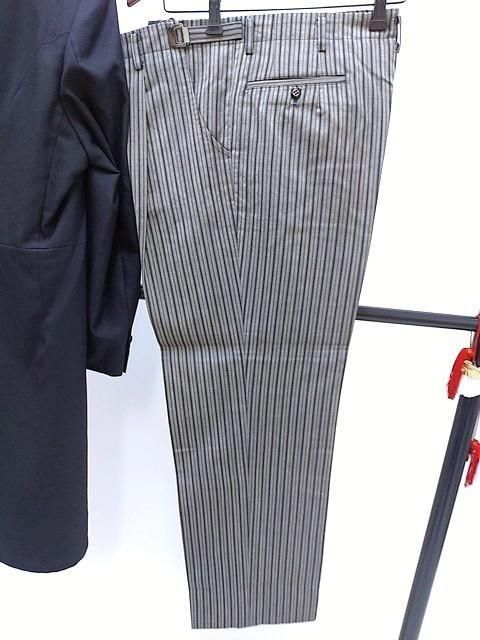 ■ダークグレーのジャケット、縞柄のズボン、グレー(灰色)の3点セットです。