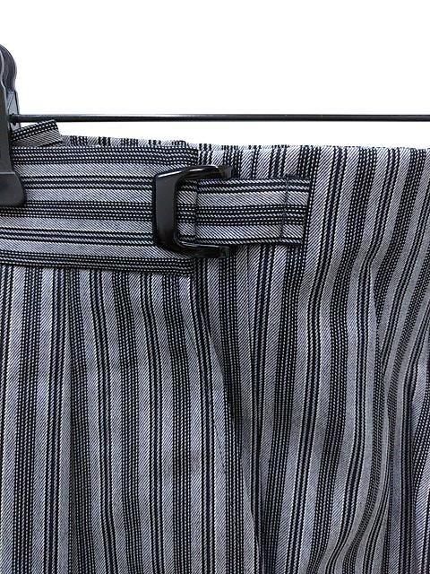 ■黒のジャケットに白のチーフの、縞柄のズボン、グレー(灰色)の3点セットです。