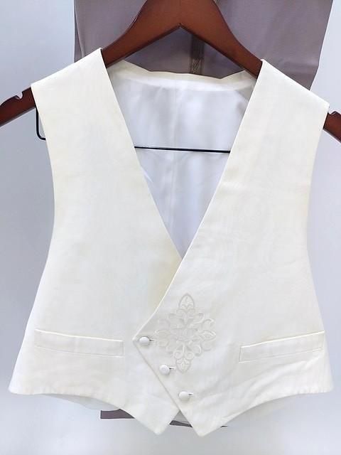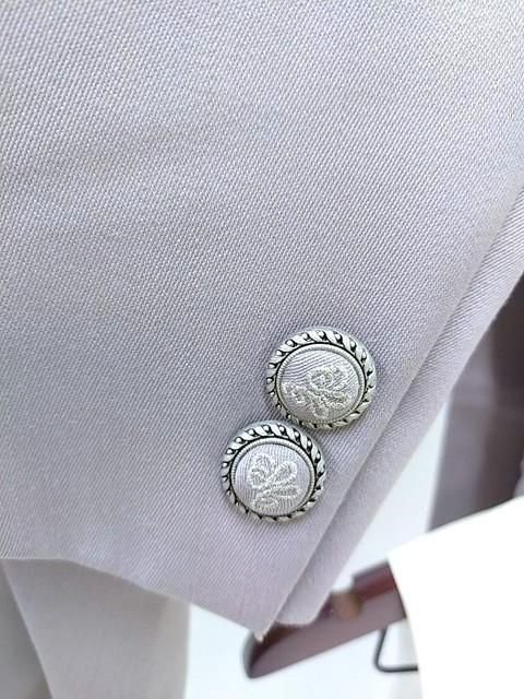■ココアブラウンの刺繍の入ったジャケットとズボン・ベストの3点セットです。