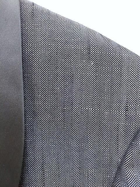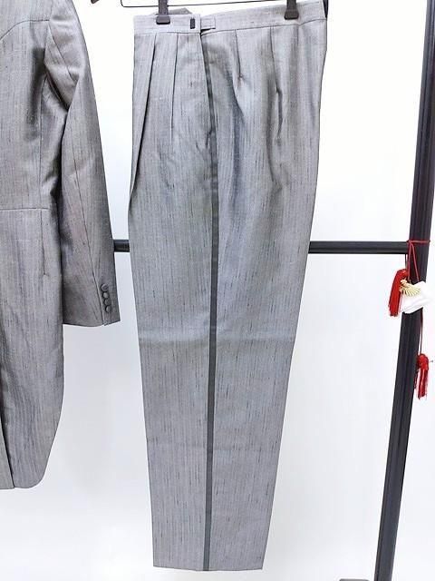 ■グレー系の織り生地のジャケットとズボン・ベストの3点セットです。