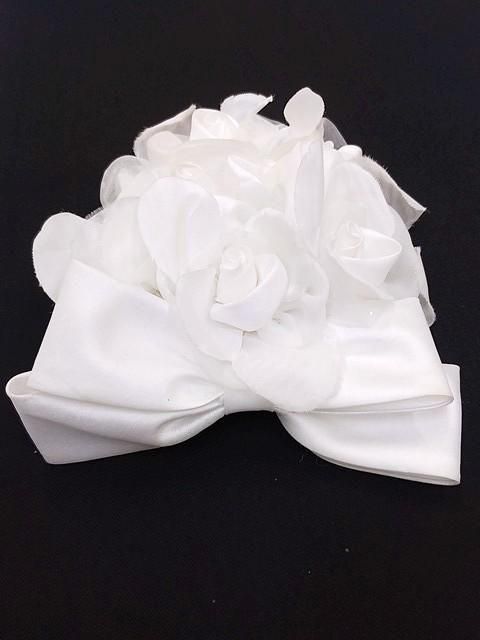 ■白、オフホワイトのツイル生地とオーガンジーのコサージュを使ったヘッドレス、髪飾りです。