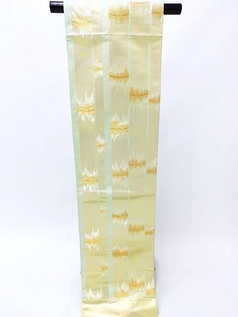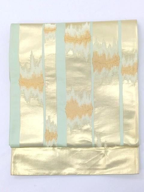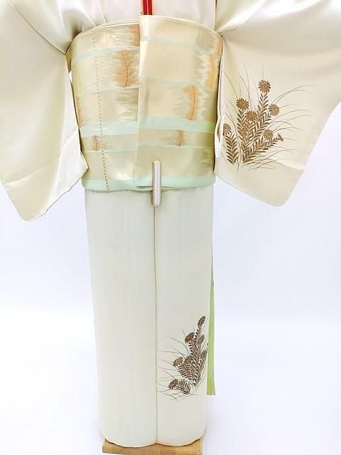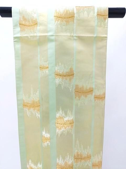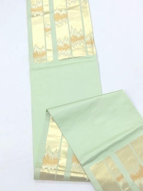 ■淡い黄緑色、ライトグリーンに金の箔柄の付け下げ訪問着に同色系の袋帯をコーデしました。