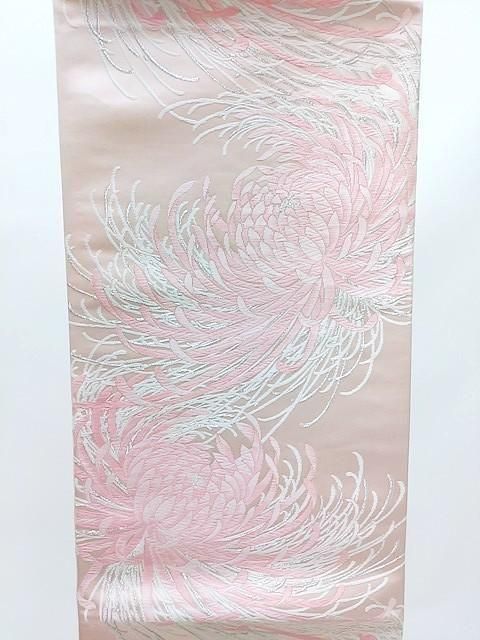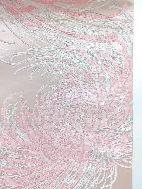 ■袋帯は訪問着や色無地にも使える色柄ですが、帯心入れと短辺かがりがされていません。