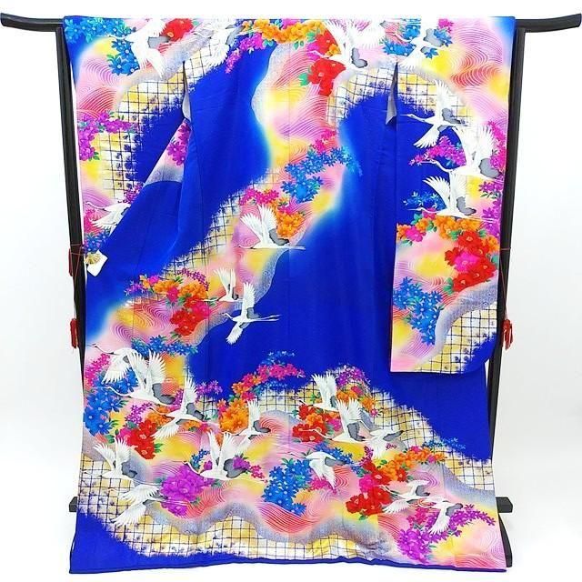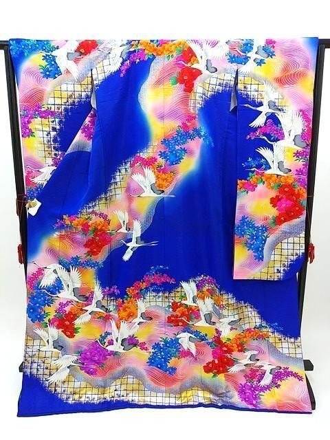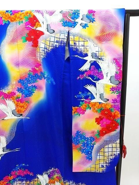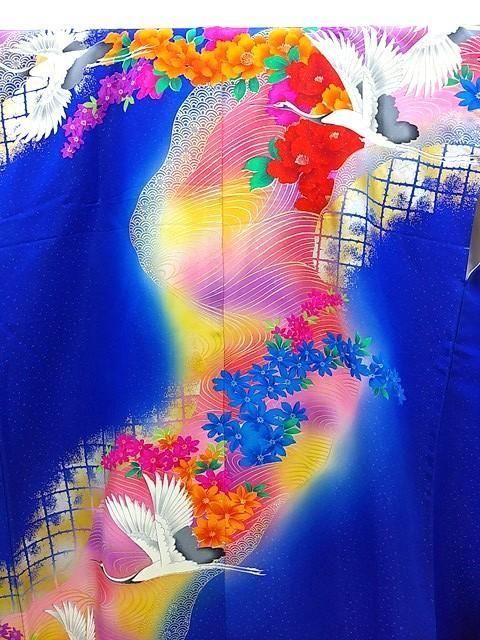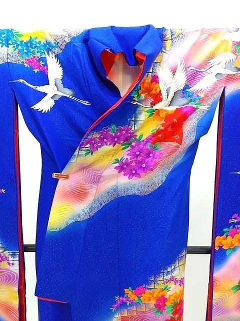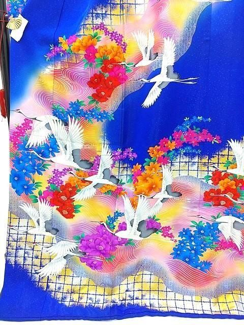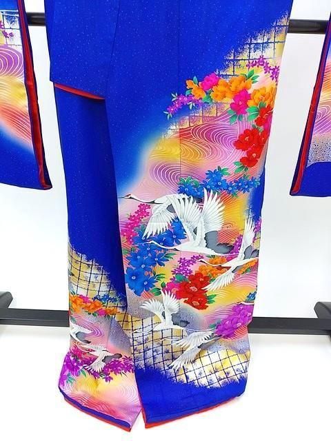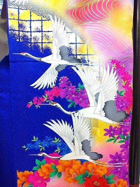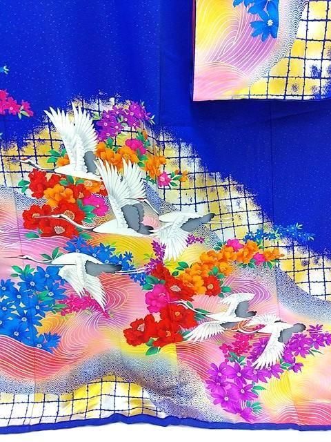 ■鮮やかな青色に金通しが入り、波・花・飛鶴が描かれています。