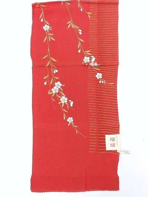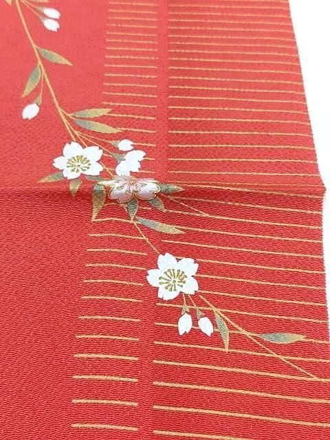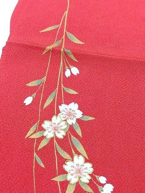 ■正絹の帯揚げ、赤色の生地に箔と刺繍を使った枝垂れ桜の柄が入っています。