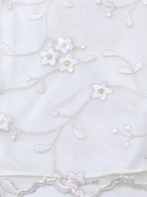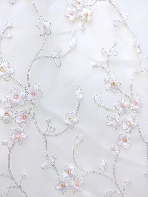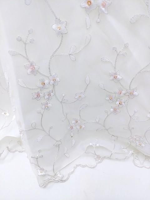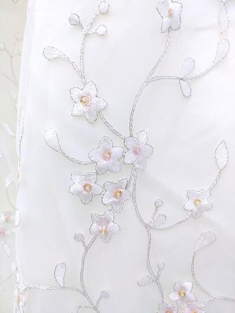 ■スカートはチュール生地に銀糸と淡いピンクの刺繍糸を使った小花がで残されています。