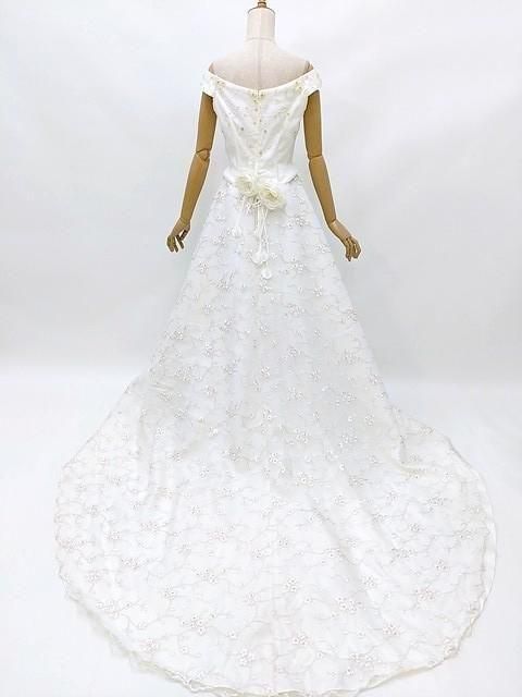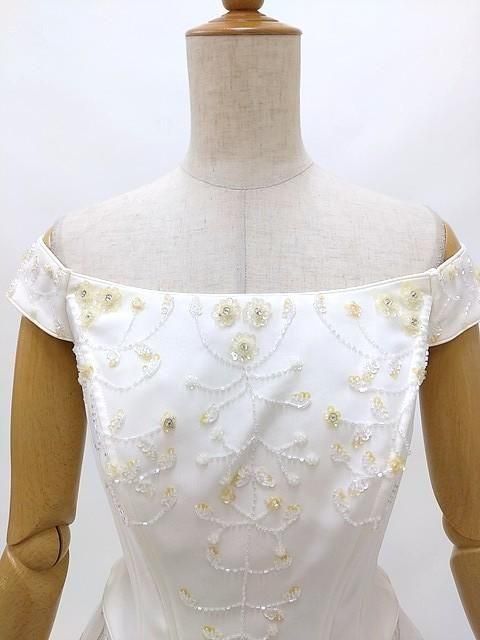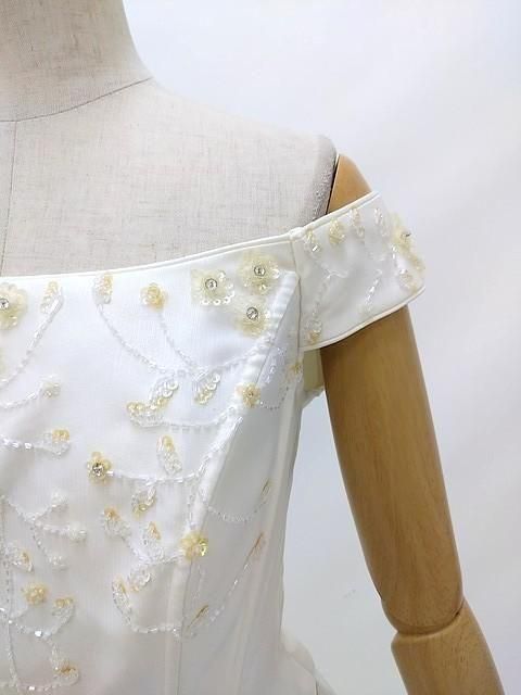 ■オフホワイトのオフショルダー、Aラインドレスです。