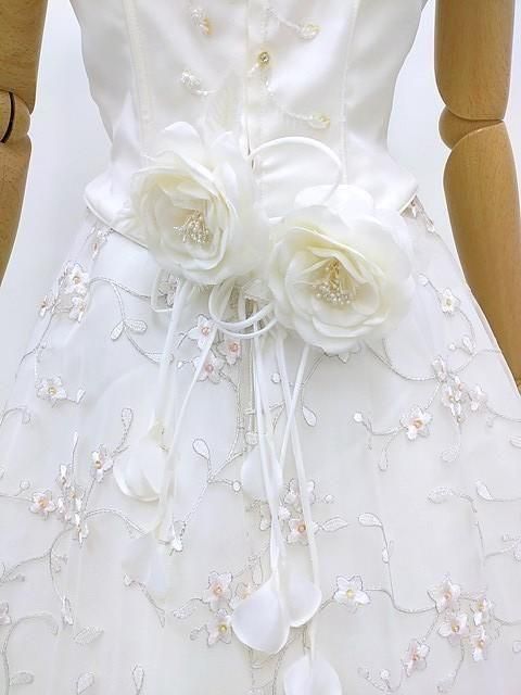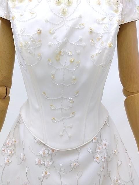 ■胸元からウエストにかけてビーズとスパンコールを使った小花が刺繍されています。