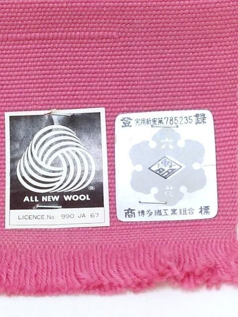 ■濃いピンク色のウール(毛)生地の名古屋帯です。