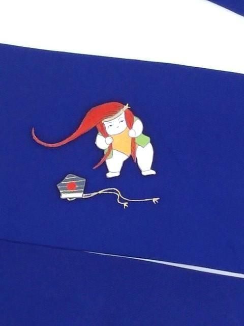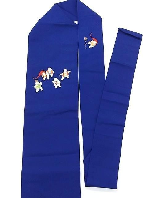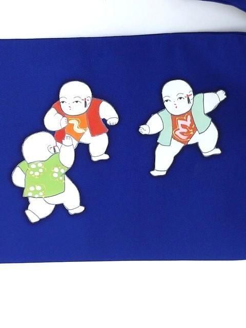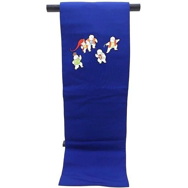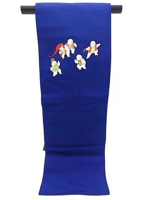 ■鮮やかな青色に唐子柄の名古屋帯です。