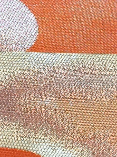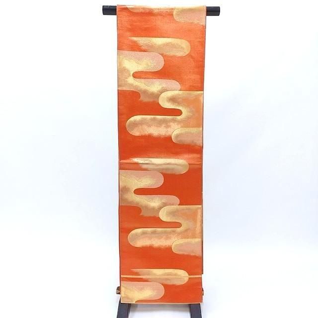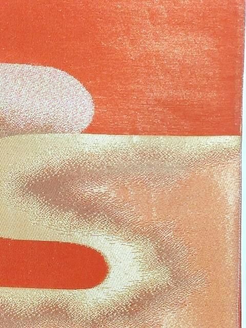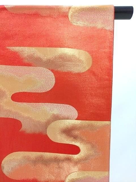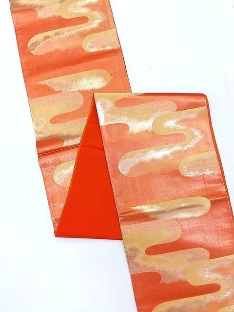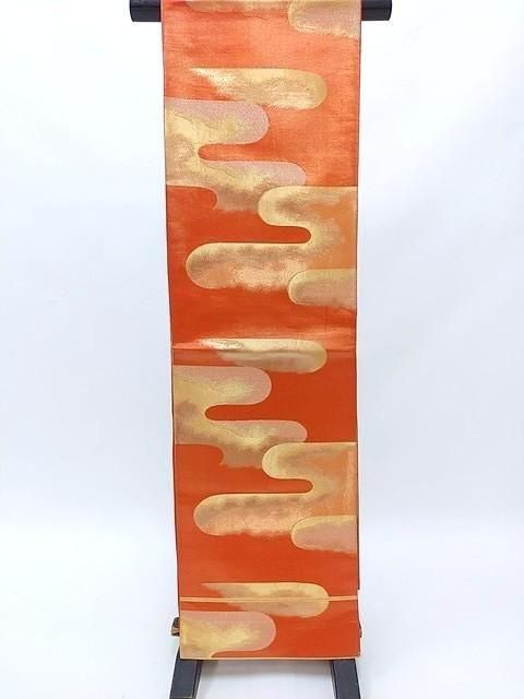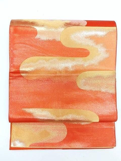 ■オレンジゴールドの地色に金色の雲取り柄のシンプルなレトロ帯です。