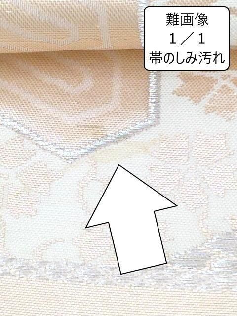 ●帯のお太鼓柄側の端の方に薄いしみ汚れが付いています。