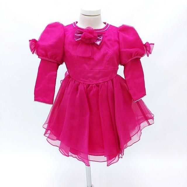 ■3歳、90cmサイズの濃いマゼンタピンクのオーガンジーのワンピースドレスです。