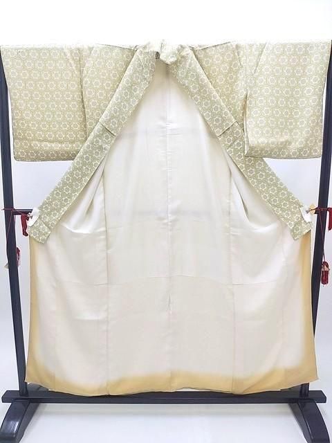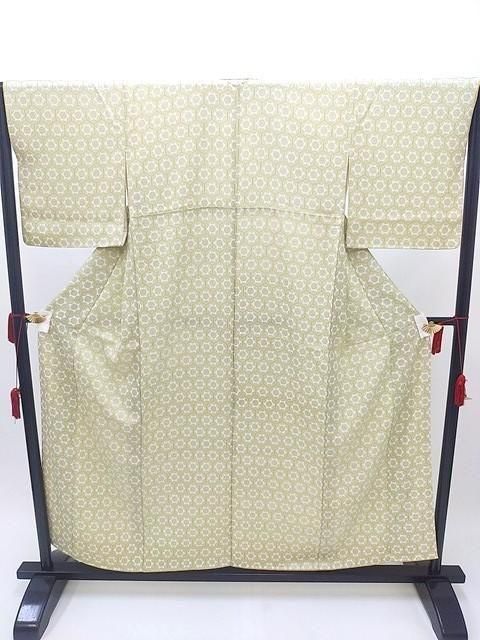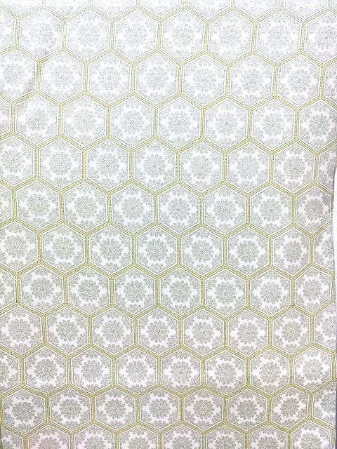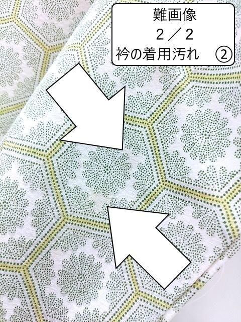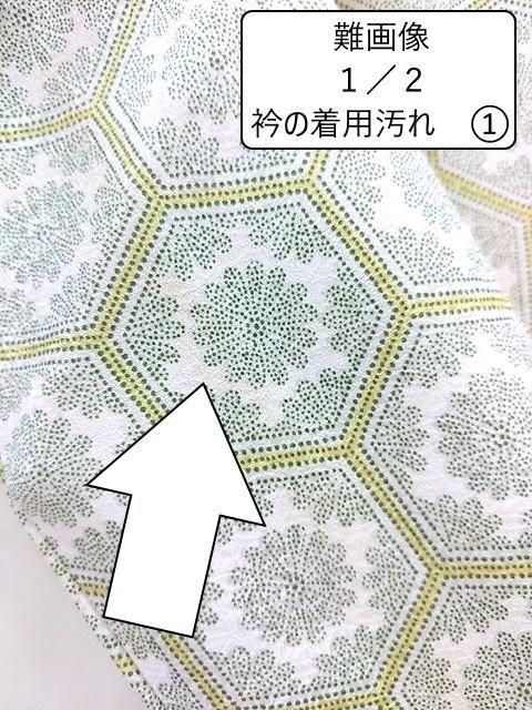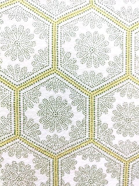 ■白地に黄色の六角、緑の点状菊柄の小紋着物です。
