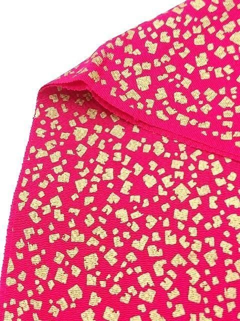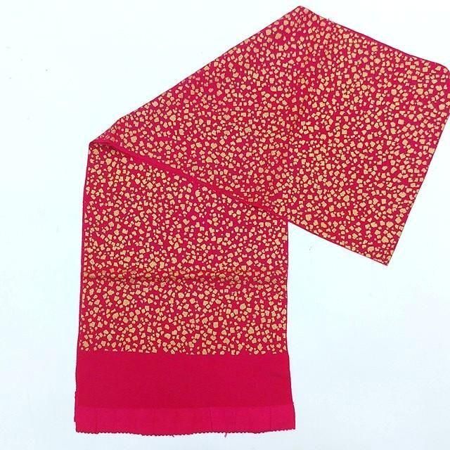 ■明るくはっきりとしたルビーレッド、赤に近いピンクの金の箔柄の縮緬生地の帯揚げです。