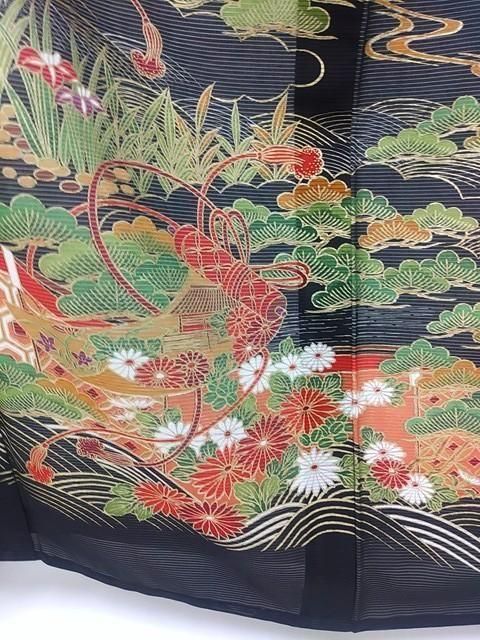 ■波の上に松・梅・菊・菖蒲、巻物に鶴の柄が描かれています。