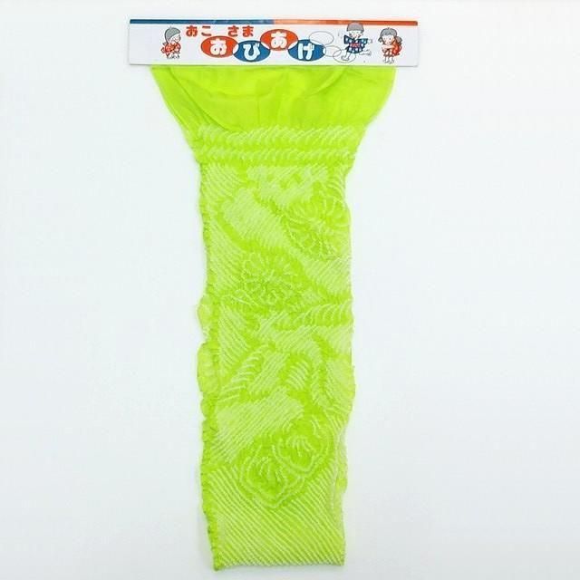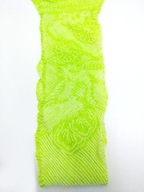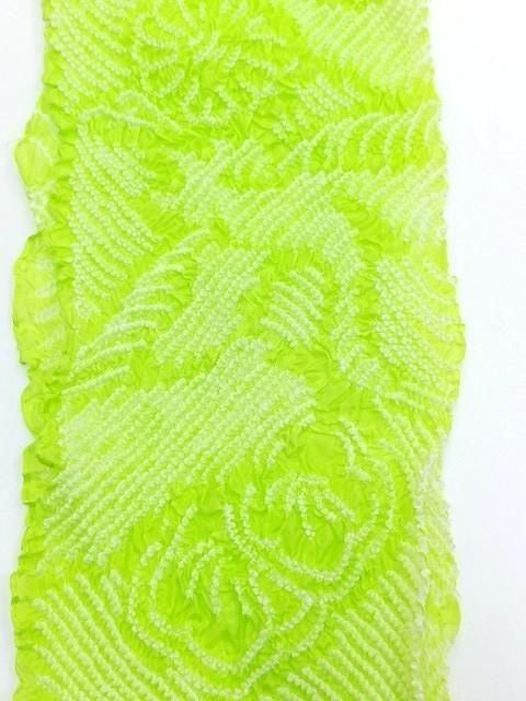 ■蛍光色の黄緑色に絞りを使って柄が描かれています。