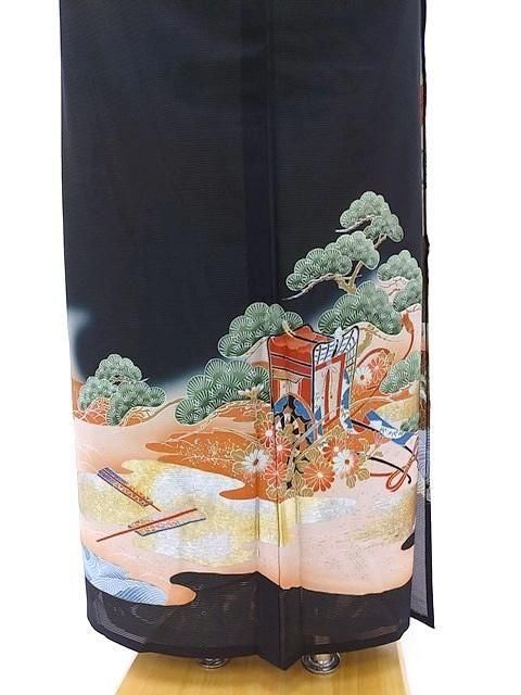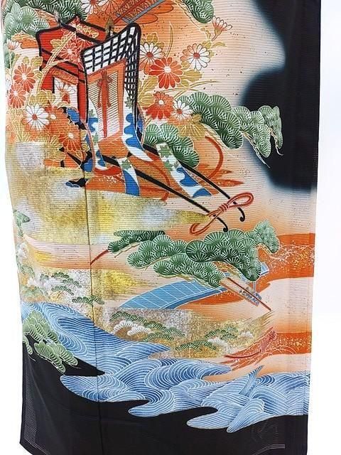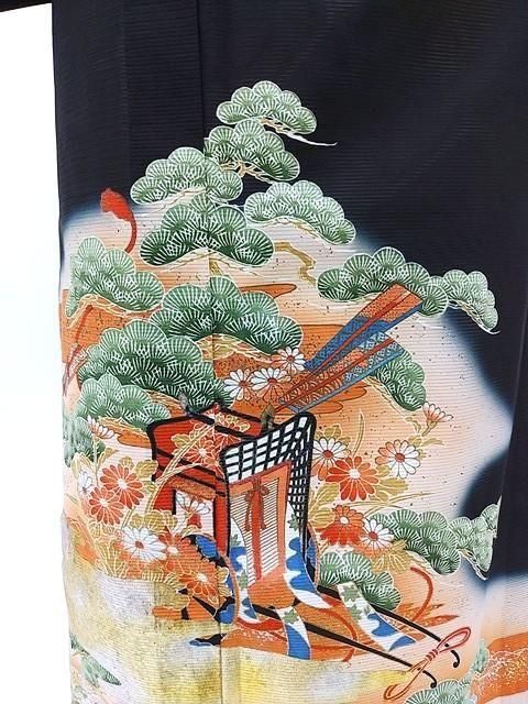 ■大きな松の木と御所車に青の波文様が映える華やかな色柄です。