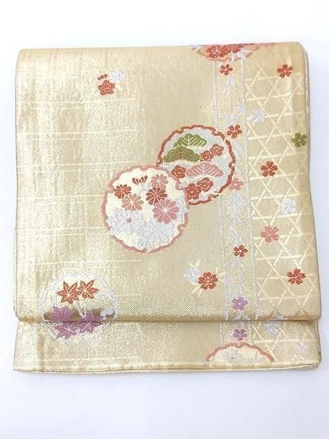 ■袋帯は淡い金色に小さな雪輪紋柄です。