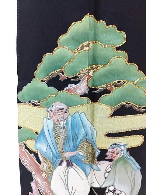 ■相生の松と老婦人の能の高砂の一幕を描いた末長い幸せを願う黒留袖にベージュ系の袋帯をコーデしました。
