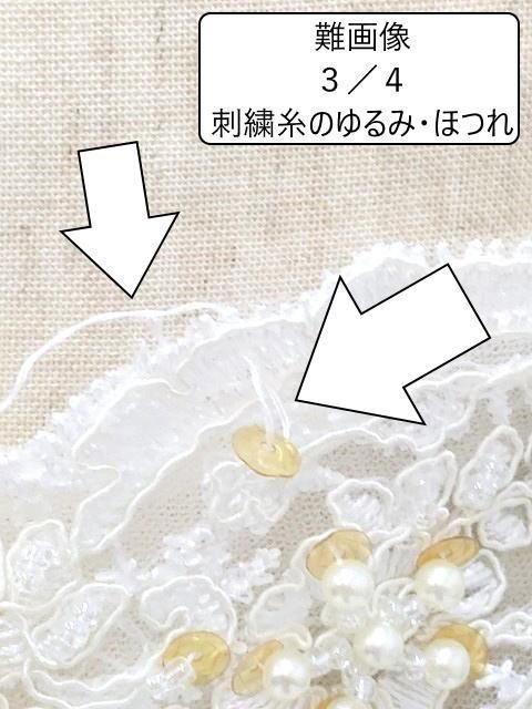 ●スパンコールに黄変色、ビーズ・スパンコールの刺繍糸にゆるみ・ほつれがあります。
